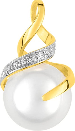 PENDENTIF OR BICOLORE PERLE DE CULTURE ET DIAMANT 0.004 cts