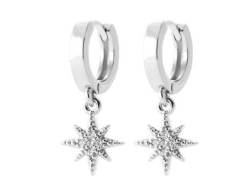 BOUCLES D'OREILLES Dame créoles et pampilles étoiles ARGENT RHODIE![]()  - Prix normal
