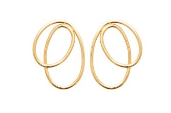 BOUCLES D'OREILLES Dame pendentifs 2 ovales ACIER DORE INOXYDABLE
