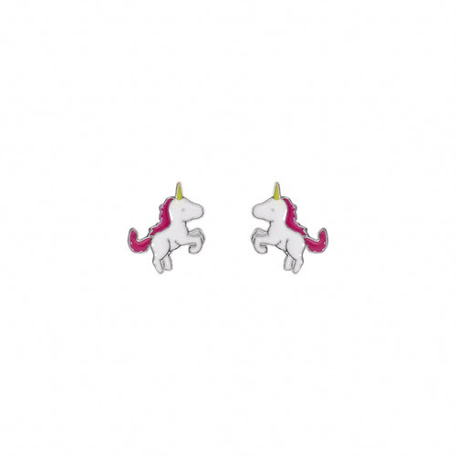 BOUCLES D'OREILLES Enfant ARGENT RHODIÉ LICORNE ENTIERE EMAILLE