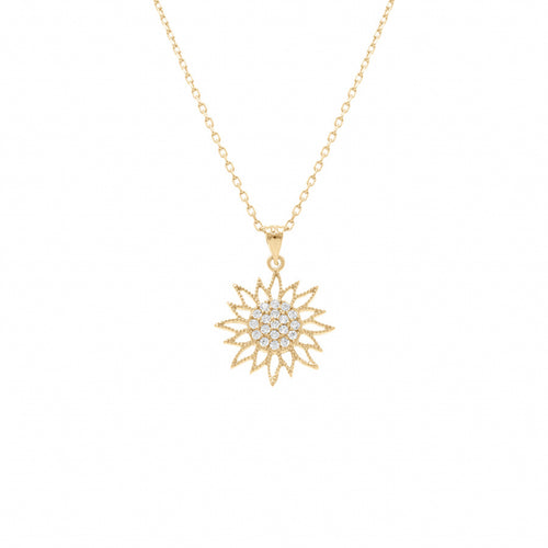COLLIER Dame Sautoir acier doré PENDENTIF SOLEIL ET PERLE D'EAU DOUCE