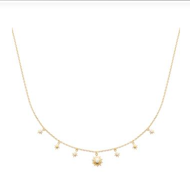 COLLIER Femme PLAQUE OR SOLEIL PAVE OXYDES