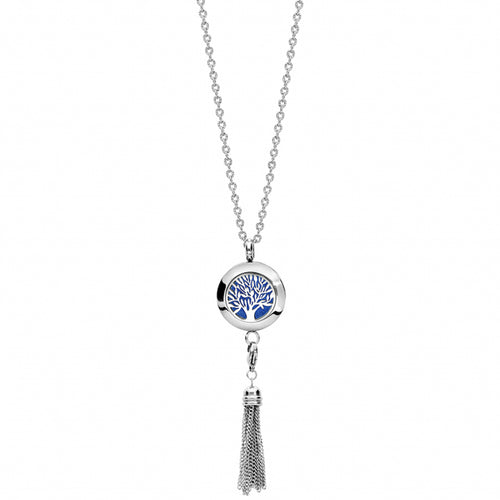 COLLIER SAUTOIR SENTEUR ACIER MEDAILLON ARBRE DE VIE ET POMPON 12 MOUSSES INTERCHANGEABLES