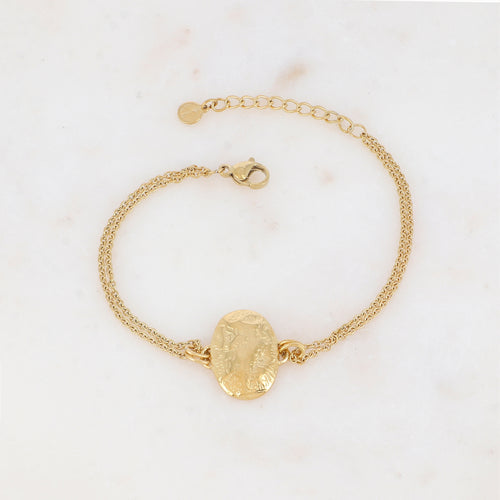 BRACELET Dame acier doré double rang avec pièce martelée ovale