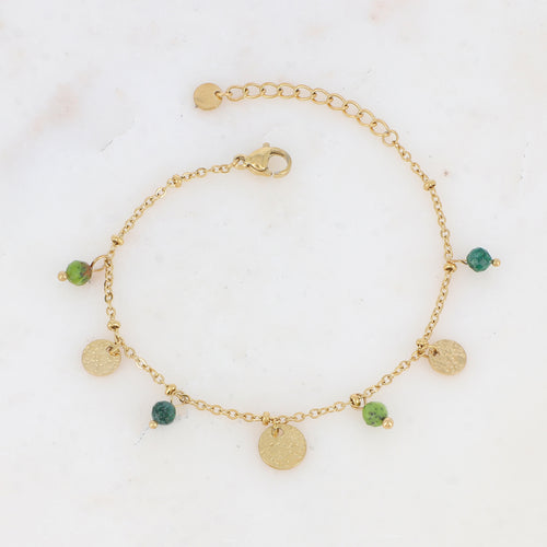 BRACELET Dame avec pampilles rondes martelées et pierres naturelles