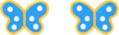 BOUCLES D-OREILLES Enfant papillon bleu PLAQUE OR