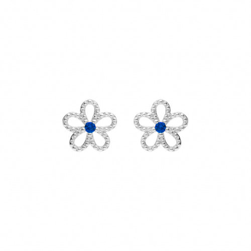 BOUCLES D'OREILLES Dame fleur +pierre bleue ARGENT