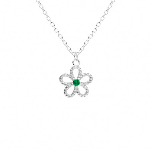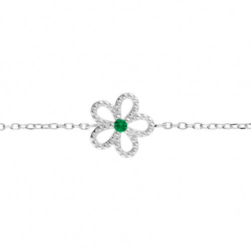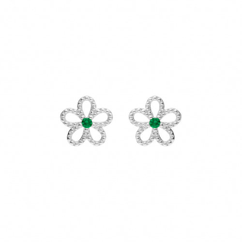BOUCLES D'OREILLES Dame fleur +pierre verte ARGENT