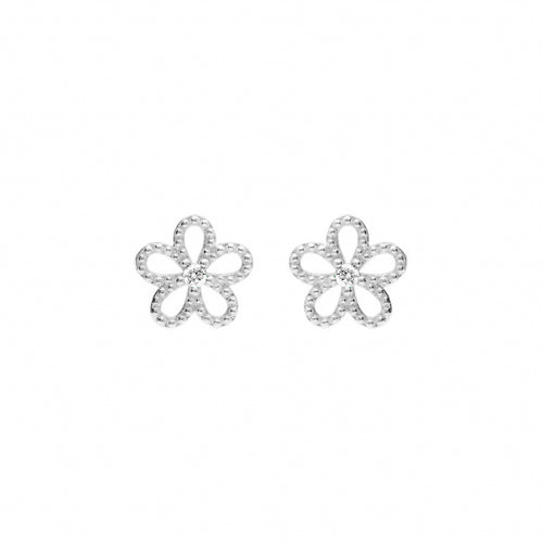 BOUCLES D'OREILLES Dame fleur +pierre transparente ARGENT