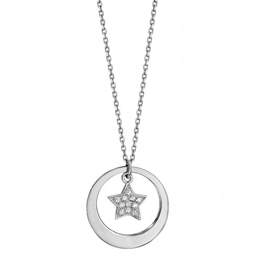 COLLIER Femme ARGENT RHODIE CERCLE AVEC ETOILE EMPIERREE