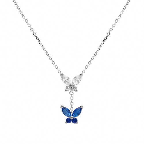 COLLIER Dame ARGENT RHODIE PAPILLON OZ