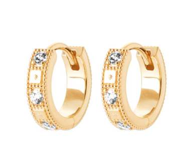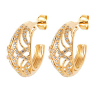 BOUCLES DOREILLES Dame Demi-Créoles ajourées et empierrées PLAQUE OR