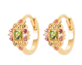 BOUCLES DOREILLES Dame Créoles empierrées multicolores PLAQUE OR