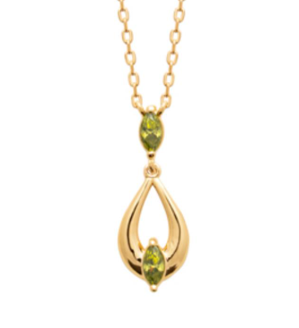 COLLIER Dame pendentif avec oxydes vert ou blanc PLAQUE OR
