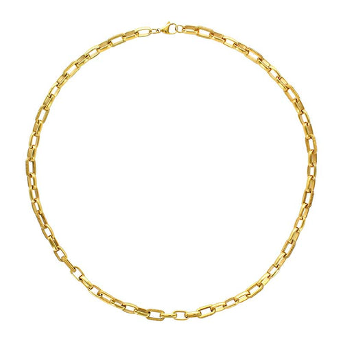 COLLIER Homme en acier DORE MAILLES RECTANGLES