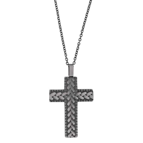 COLLIER Homme en acier patiné et CROIX