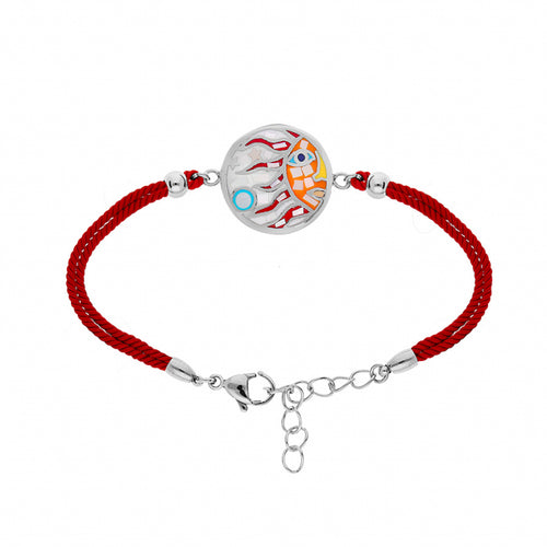 • BRACELET ACIER STELLA MIA SOLEIL MULTICOULEUR AVEC NACRE CORDON ROUGE