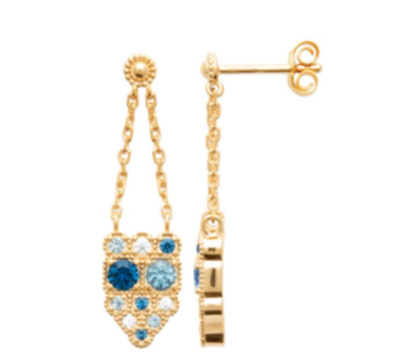 BOUCLES D OREILLES Femme PLAQUE OR OXYDES BLEUS ET BLANCS
