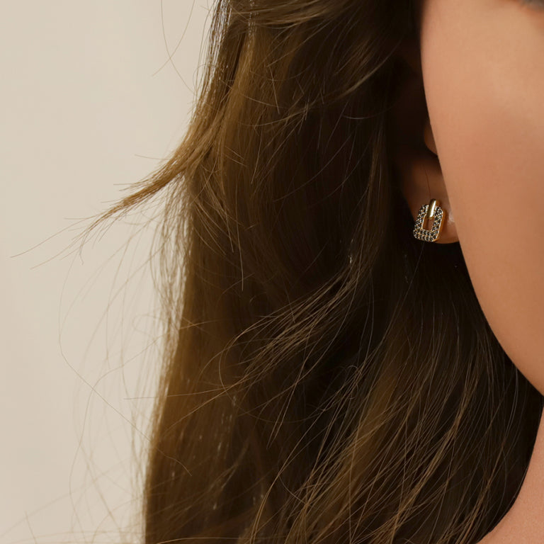 BOUCLES D'OREILLES Dame motif carré avec zirconiums Bleus PLAQUE OR