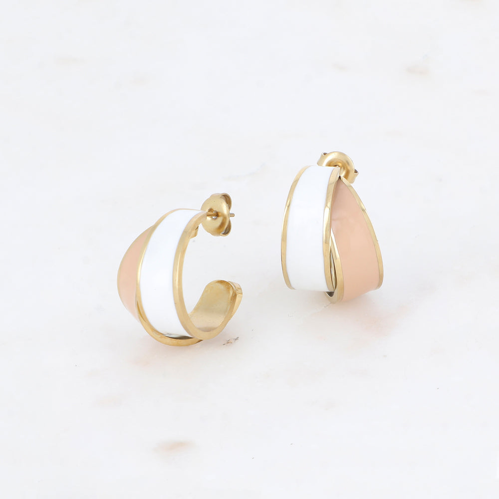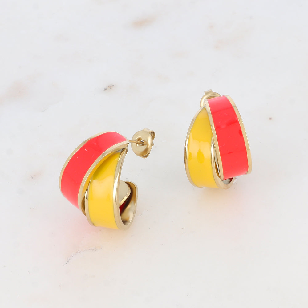 BOUCLES D'OREILLES Dame créoles à puces double rang émaillées acier