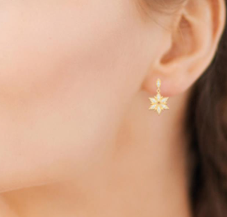 BOUCLES D'OREILLES Dame pendantes ETOILES empierrées PLAQUE OR