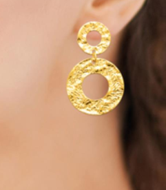 BOUCLES D'OREILLES Dame pendentifs 2 ronds ACIER DORE INOXYDABLE