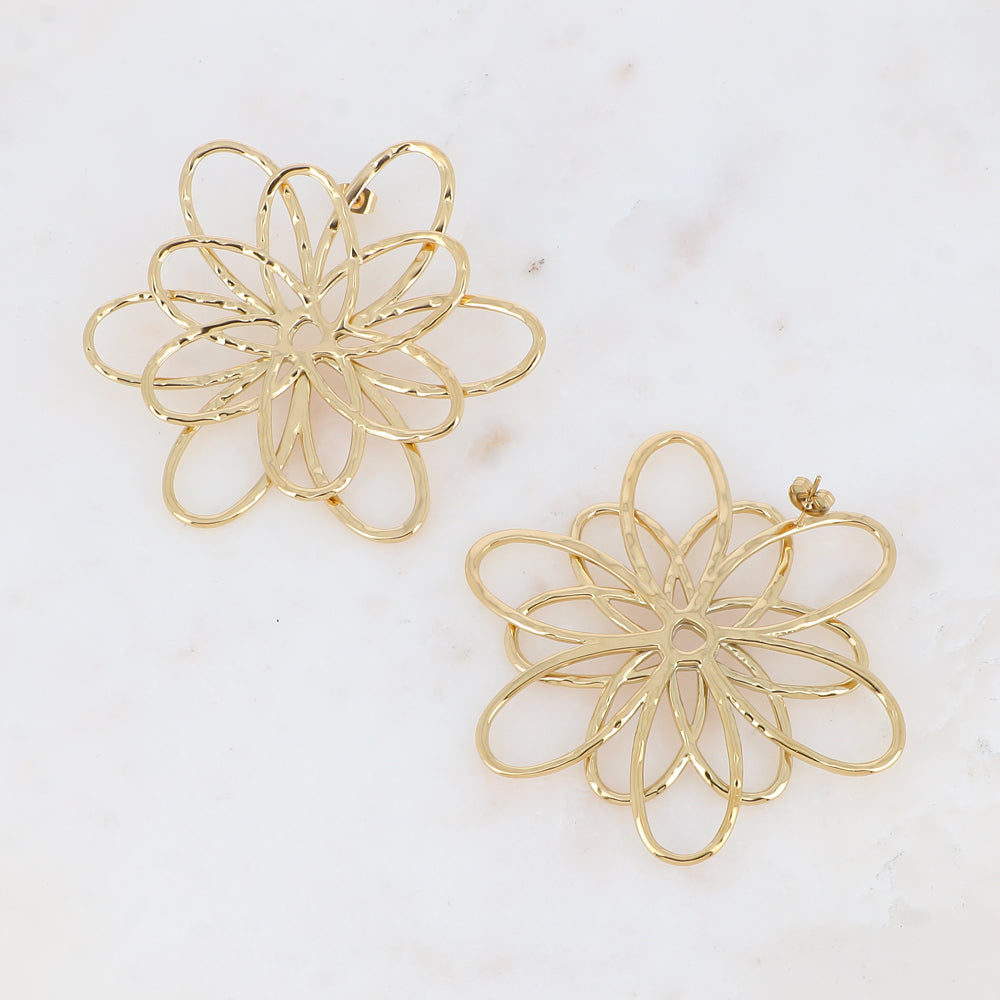Boucles puces Femme ACIER grande pièce fleurie ajourée BOHM