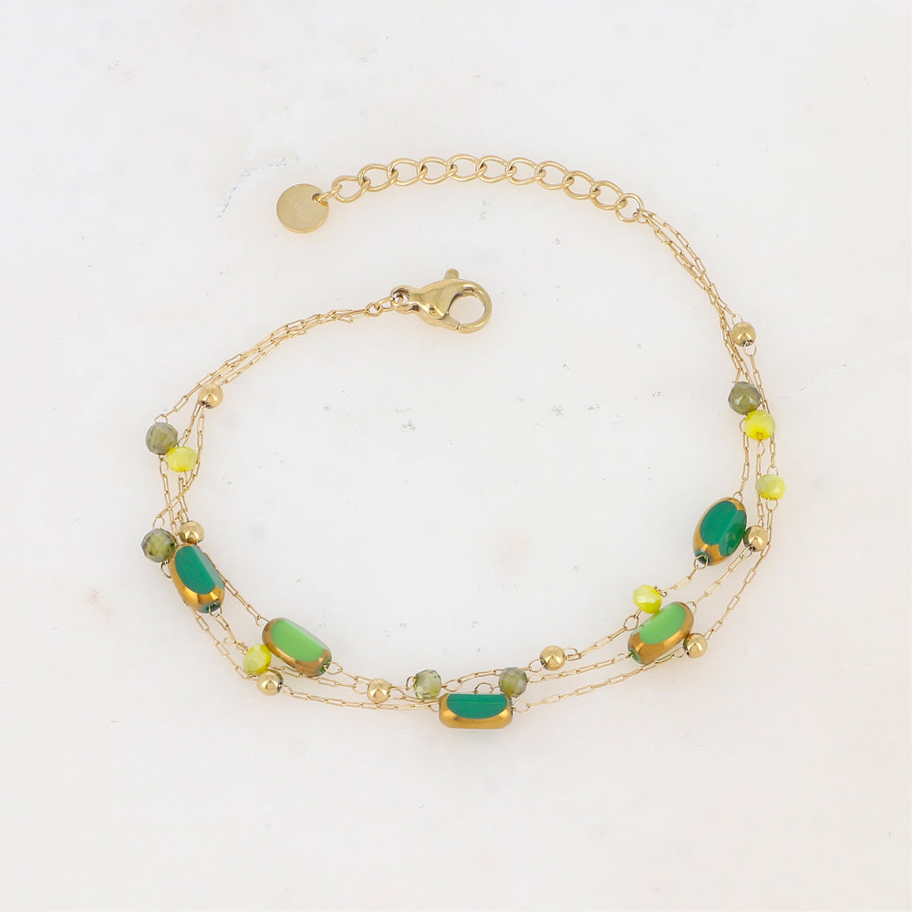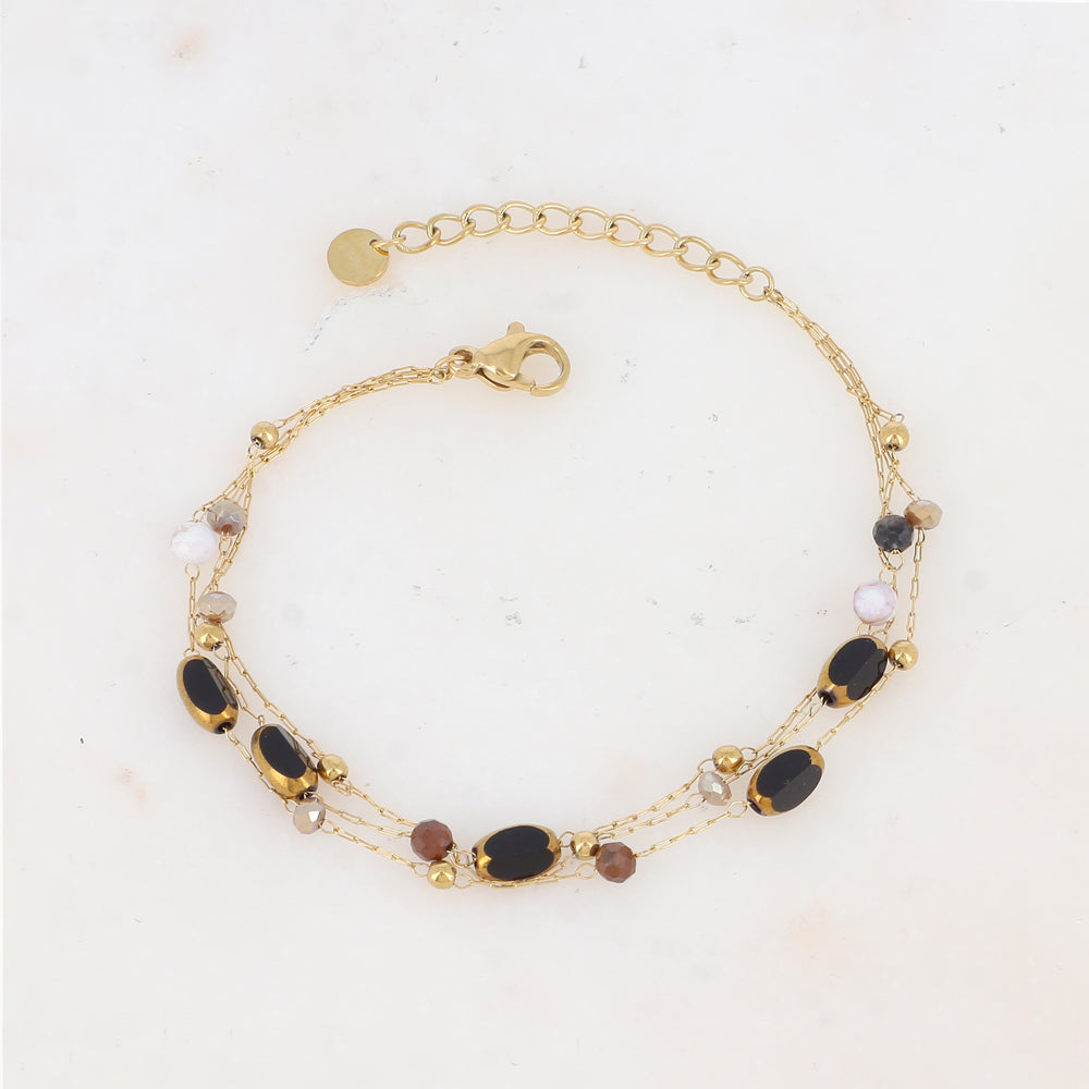 BRACELET ACIER Dame 3 rangs avec pierres naturelles et pâte de verre