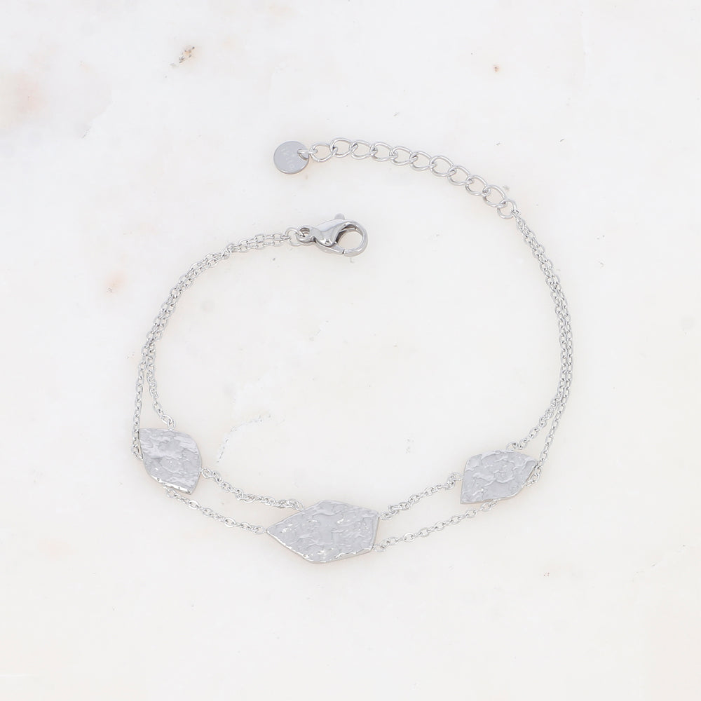 BRACELET Dame double rangs avec pampilles géométriques martelées acier