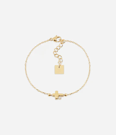 Bracelet en acier inoxydable uni ou doré sur lequel se trouve un motif de croix et un zirconium sont attachés.