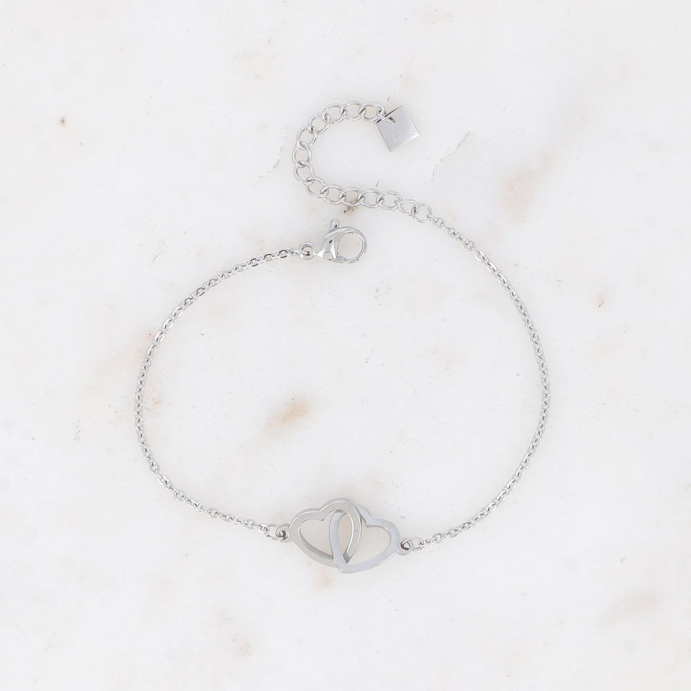 Bracelet 2 rangs en acier inoxydable composé d'un pendentif de 3 maillons ronds.