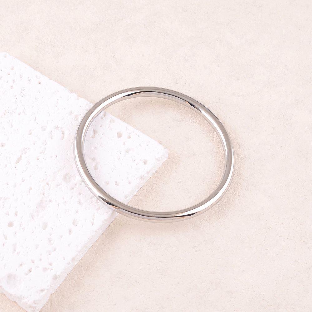 Bracelet de type jonc non réglable effet miroir et lisse.Matière : Acier inoxydable. Hypoallergénique, ce bijou résiste à l'eau et ne noircit pas.Epaisseur : 5 mm. Diamètre extérieur : 74 mm. Diamètre intérieur : 64 mm.