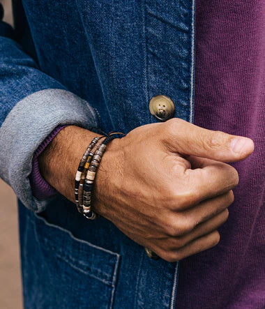 - Bracelet ajustable sur lequel sont enfilées des rondelles colorées.