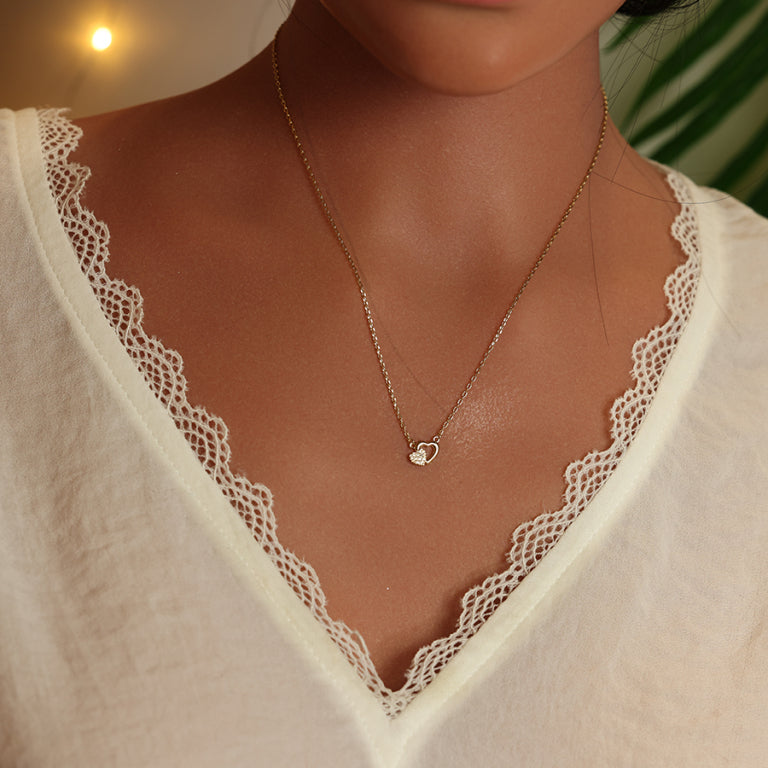 COLLIER Femme PLAQUE OR COEUR OXYDES