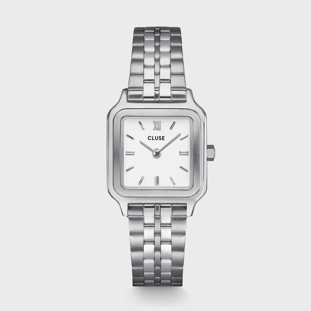 MONTRE Dame BELISENNA argentée fond blanc Petite Gracieuse CLUSE CW11817